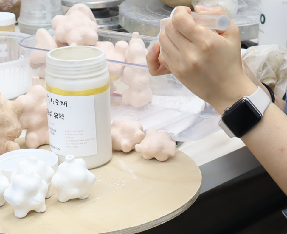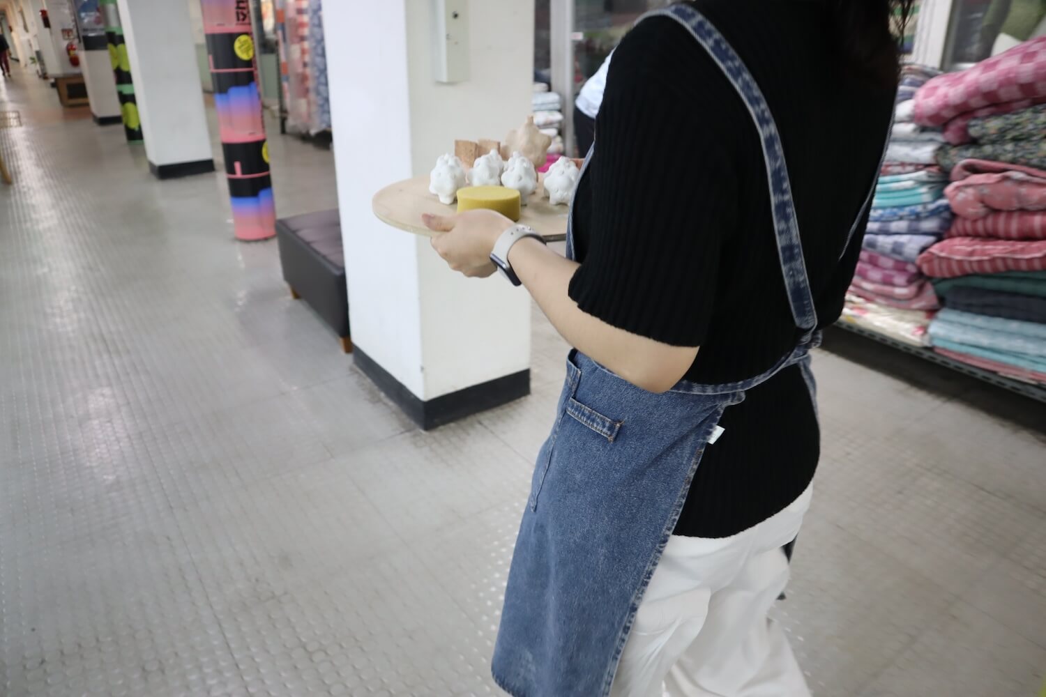 학교에서 작업을 이어오다 최근 이곳으로 작업실을 구해 들어오게 되었다. 창작레지던시(도자) 작업 특성상 흙이 늘 작업실에 있는데, 지금 사용 중인 작업실은 두 구획으로 나뉘어 있어 흙이 있는 곳과 없는 곳이 구분이 되어 만족스럽다. 다만 전기세를 모두 상인들이 내다 보니 아무리 더워도 마음대로 냉방을 할 수 없어 여름에 매우 힘들다. 또 화장실이 한쪽 끝에 있어 최대한 물을 마시지 않고 작업을 한다.