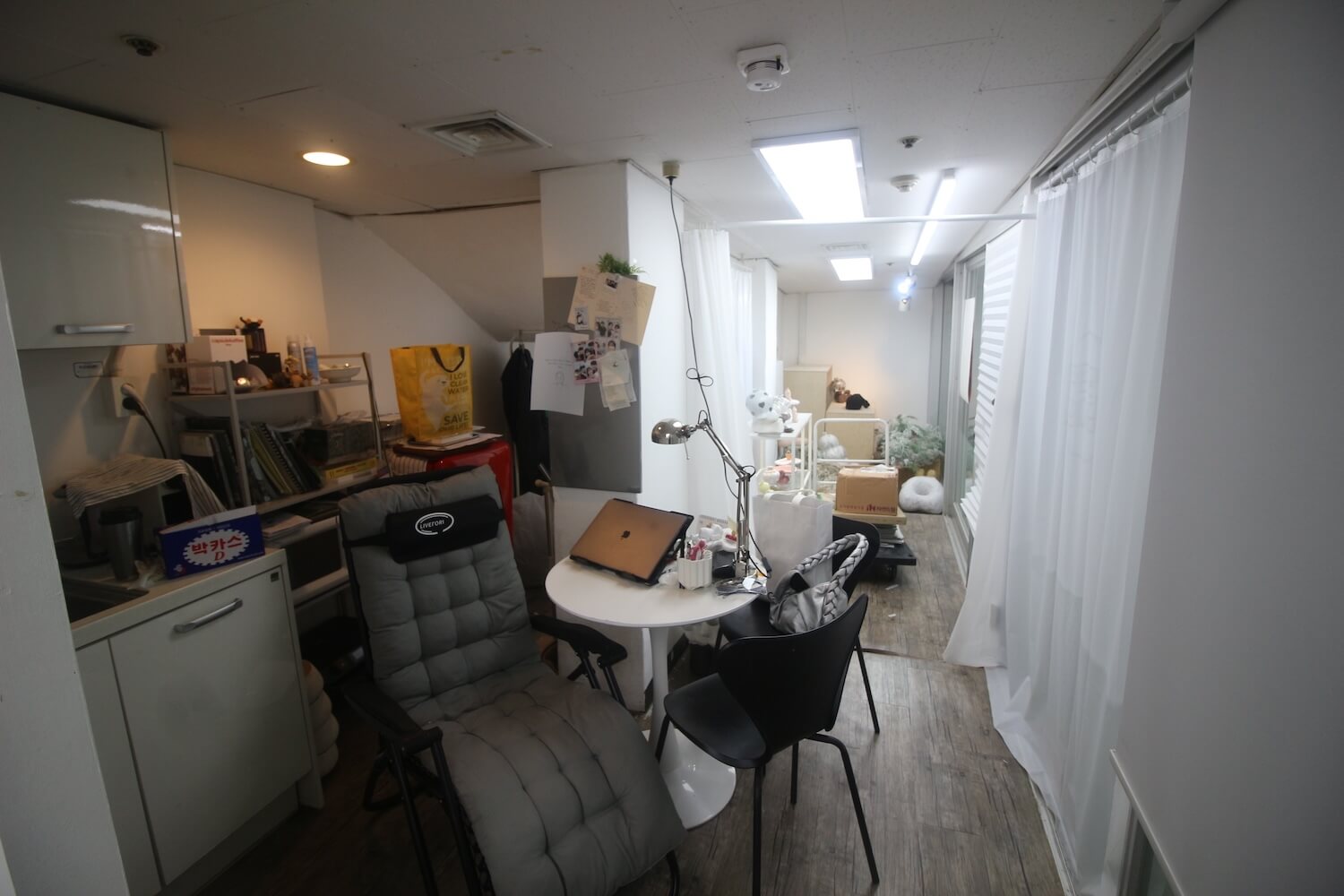 겨울엔 춥고 여름은 덥고 습해요. 여기서 중앙난방으로 틀어주는 에어컨이 밤 10시에는 끊겨요. 상인분들이 추우면 상인분들이 전화해서 끄세요. 왜냐하면 전기세는 저희는 안 내고 상인분들이 내시니까. 우리가 너무 더워서 켜면 상인 분들이 안 덥다고 하면서 끄죠. 상인분들하고 상생하는 구조니까, 에어컨 같은 것도 현실적으로 다가와요.